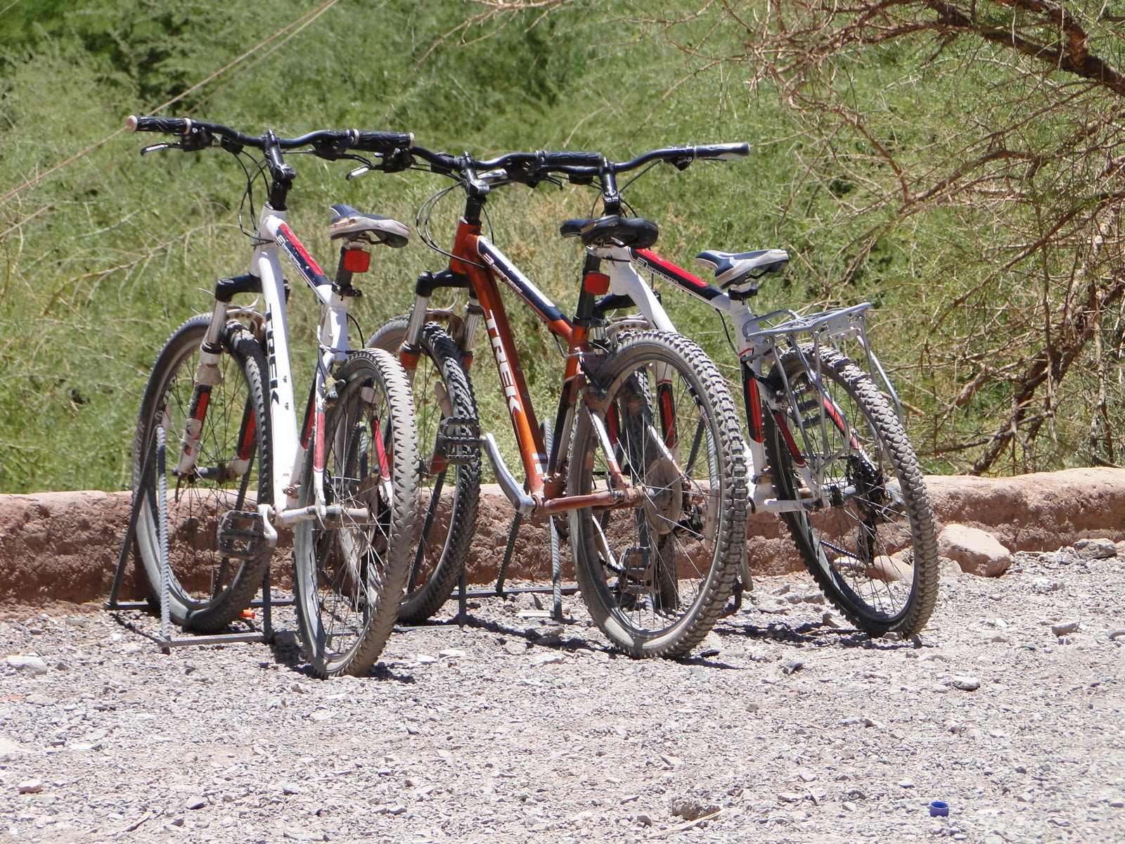 As motos Magrela, Formigão e Gordarela fazendo pose no deserto.